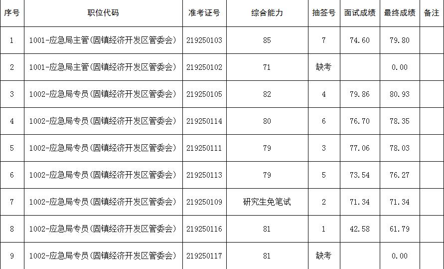 2021年固镇县经济开发区管委会面向社会公开招聘化工专业人才面试成绩及最终成绩公示