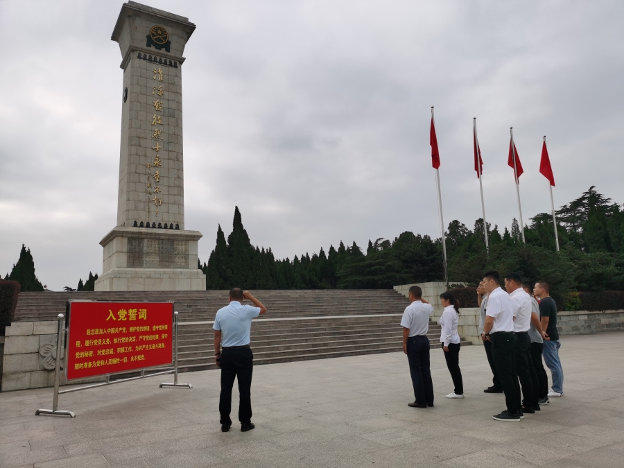最后,大家来到淮海战役烈士纪念碑前。中心全体党员向烈士纪念碑默哀,行三鞠躬礼,在党支部书记带领下,站在巍峨高大的烈士纪念碑前,重温入誓词,回顾入党初心,坚定理想信念,增强责任使命。