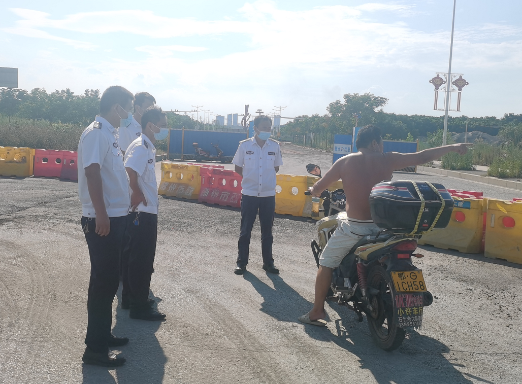 在五四湖大桥卡口,一辆辆进城的车辆排起了长龙。葛店分局负责人杜辉同志亲自带队,对来往车辆、行人进行测温、查验行程码、核酸检测结果、信息登记等工作。向司机耐心详细解释葛店开发区当前疫情形势,劝说非必要不出省、不出市、不出区,减少人员流动。