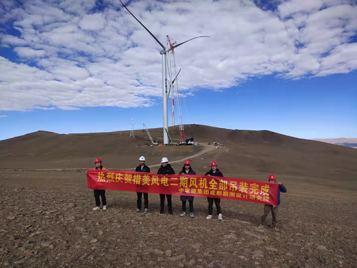 10月7日上午,中国电建成都院设计采购建设的世界海拔最高风电项目——西藏哲古风电场10台机组全部吊装完成,为实现今年全容量并网发电奠定基础,对巩固中国电建超高海拔新能源项目开发技术实力,促进超高海拔地区风电项目规模化开发起到重要推动作用。