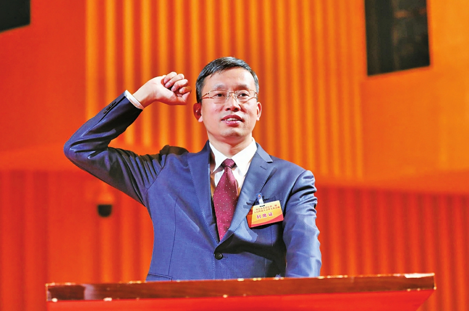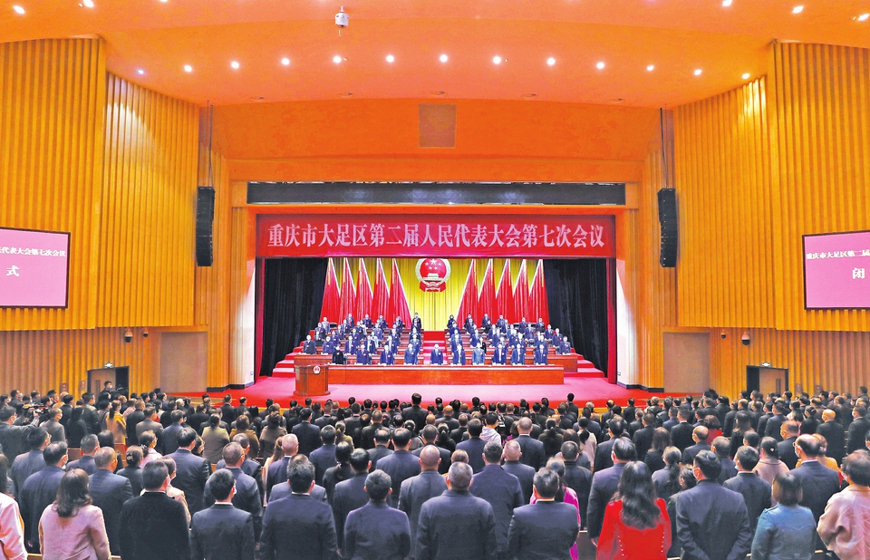 ?徐晓勇宣誓。?10月21日下午,区二届人大七次会议圆满完成各项议程后,在区文化艺术中心胜利闭幕。 大会执行主席张有力、罗晓春、王志、胡国强、尹光宗、骆华、李继刚、王大蓉、陈任杰在主席台前排就座。张有力主持会议。 陈一清、徐晓勇、蒋朝彬、苏一元、廖文丽、魏中武、张明、吴宗发等,以及大会主席团成员在主席台就座。 本次会议应到代表310人,实到代表294人,符合法定人数。 闭幕式前,区二届人大七次会议举行了第二次全体会议,表决通过了总监票人、监票人名单。选举产生了区人民政府区长、区人民检察院检察长。徐晓勇当选区人民政府区长,孙琳当选为区人民检察院检察长(按照法律规定,须报经市人民检察院检察长提请市人大常委会批准),现场爆发了热烈的掌声。 随后,大会举行宪法宣誓仪式。徐晓勇抚按《中华人民共和国宪法》,面向国旗国徽庄严宣誓。 徐晓勇在讲话中说,当前,大足正处在跨越崛起的新风口、大有可为的新阶段。接过区长的“接力棒”,深切地感受到使命在身、重任在肩,惟有奋斗、方得始终。决心在区委领导下,恪尽职守、砥砺奋进,奋力跑好大足接续发展的重要一程,努力向全区人民交出一份合格答卷。 徐晓勇承诺,一是始终对党忠诚。深入学习贯彻习近平新时代中国特色社会主义思想和党的十九大精神,把讲政治作为第一要求,牢固树立“四个意识”,坚定“四个自信”,做到“两个维护”,以实际行动兑现市委提出的“三个确保”政治承诺,切实做到政治上忠诚可靠。坚持不折不扣把中央决策部署和市委、区委工作安排落到实处,确保政府各项工作始终沿着正确的方向前进。二是真心为民服务。始终牢记习近平总书记“人民就是江山、江山就是人民”的谆谆教诲和深情嘱托,认真践行全心全意为人民服务的根本宗旨,时刻把群众的“急难愁盼事”挂在心上,把群众的“柴米油盐事”抓在手上,多做暖民心、稳民心、得民心的实事,不断增强群众的获得感、幸福感、安全感。三是勇于担当作为。大力弘扬“开山化石、励志图新”的大足石刻人文精神,不惧难、不怕苦,躬身实践、担当作为,完整准确全面贯彻新发展理念,积极抢抓成渝地区双城经济圈建设和“一区两群”协调发展重大战略机遇,立足“桥头堡”城市定位,把政府的工作谋在新处、干在实处,定一件、干一件,干一件、成一件,一届接着一届干,一张蓝图绘到底,加快推动大足在国际知名旅游地建设、特色产业发展、新型城镇化建设、美丽乡村建设等方面迈开“大足”,努力创造经得起实践、人民和历史检验的发展实绩,不负时代、不负人民、不负韶华。四是坚持依法行政。坚决服从区委领导,主动接受区人大及其常委会的法律监督、工作监督和区政协的民主监督,自觉接受社会和舆论监督,习惯于在“聚光灯”下行使权力,在“放大镜”下开展工作,让权力在阳光下规范透明运行。坚持尊法、学法、守法、用法,用法治思维和法治方式推动发展、深化改革、解决矛盾。坚持民主集中制,团结带领区政府一班人,继承和发扬历届班子、历任领导的好传统、好作风,持续巩固沉心静气干事业、齐心协力谋发展的良好局面。五是带头清正廉洁。始终把廉洁从政作为立身之本,认真落实全面从严治党责任,着力加强政府系统党风廉政建设和反腐败工作。坚持把纪律和规矩挺在前面,严格执行中央八项规定及其实施细则精神,时刻自重自省自警自励,存戒惧、知敬畏、守底线,保持“亲”“清”政商关系和健康生活情趣,切实做到干干净净做事、清清白白做人,永葆共产党人的政治本色。 徐晓勇表示,将坚持以习近平新时代中国特色社会主义思想为指引,晓出夜行、勇担使命,立下愚公志、奋战新起点,始终保持永不懈怠的精神状态和一往无前的奋斗姿态,为了大足永不满足,迈开大足永不停足,努力为成就大足新的梦想与荣光贡献自己全部的智慧和力量。 张有力在讲话中说,今年是换届之年,当前又临近届末岁尾,各项任务十分繁重。全区人大系统要认真学习贯彻中央人大工作会议精神,坚持和完善人民代表大会制度,加强和改进新时代人大工作,不断发展全过程人民民主。要坚持围绕中心,服务大局,围绕区委工作部署,紧扣区委打好“文旅牌”,建强“桥头堡”,加快建设国际旅游文化名城等工作要求,聚焦全域打造文旅融合升级版等重点工作,进一步提升监督质效,切实做到区委重心工作推进到哪里,人大工作就跟进到哪里,力量就汇聚到哪里,作用就发挥到哪里。要扎实做好人大代表换届选举工作,充分发挥代表长期扎根基层、熟悉情况、联系广泛的优势,争做区镇人大换届选举正能量的传播者、法律法规的遵从者,为区镇人大换届选举工作顺利开展作出自己应有的积极贡献,确保本次区镇人大换届选举依法实施,有序推进,圆满完成。要筹备开好区三届人大第一次会议,通过法定程序,审议通过各项工作报告,选举产生新一届地方国家机关领导人员,为大足“十四五”期间经济社会高质量发展奠定更加坚实的基础。 大会在雄壮的国歌声中闭幕。 列席本次全体会议的有:不是区人大代表的市管领导,政府组成部门主要负责人,曾在区(县)党委、人大(含离休干部)、政府、政协任正职的市管退休干部;不是区人大代表的区人大常委会各委室(中心)负责人、调研员,区监察委副主