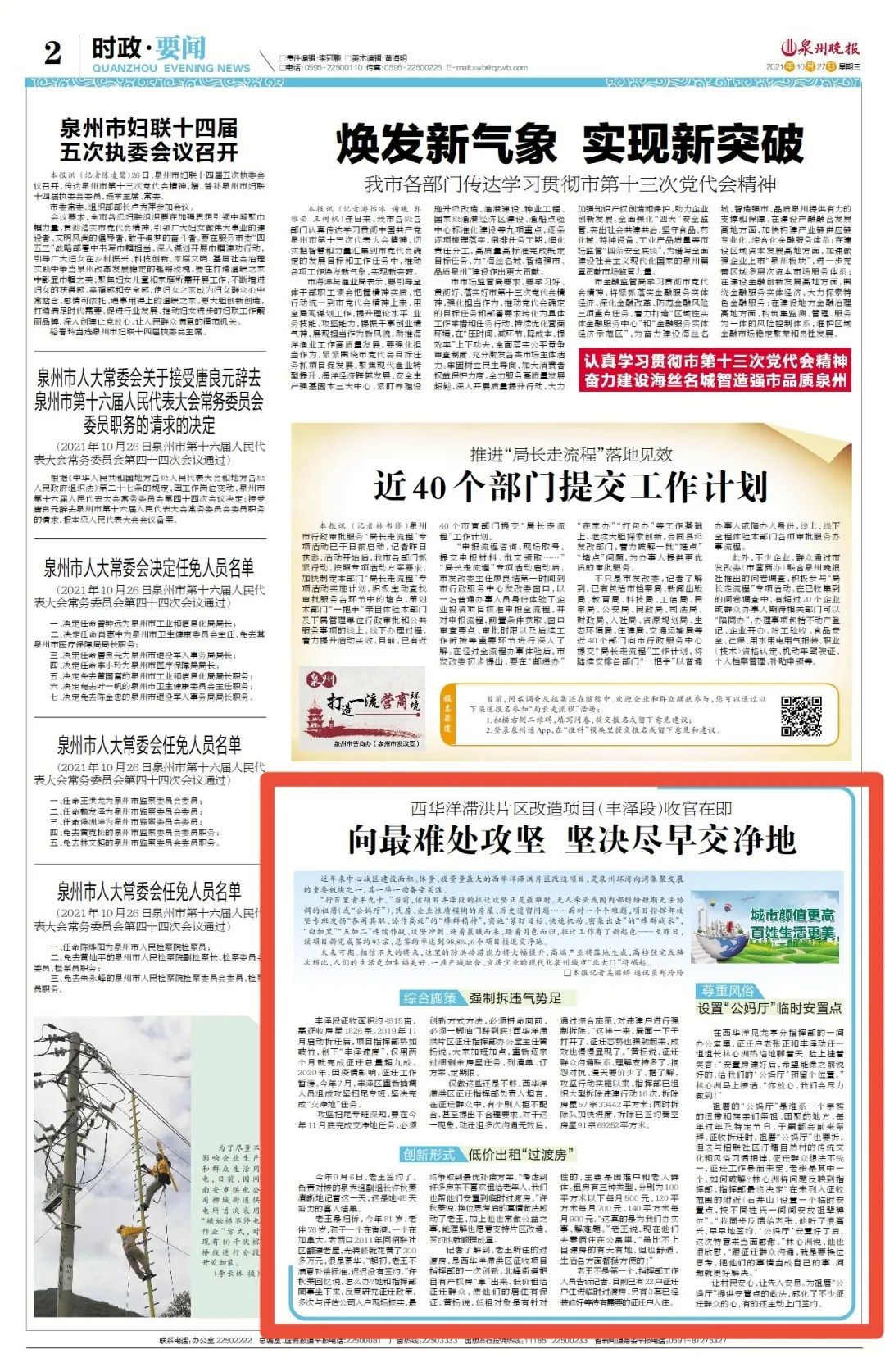 昨天,泉州晚报刊登文章《向最难处攻坚 坚决尽早交净地西华洋滞洪片区改造项目(丰泽段)收官在即》报道该片区征迁扫尾进展情况