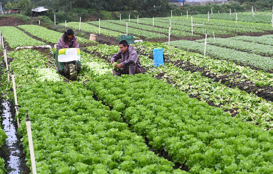 11月2日,在广西柳州市柳江区进德镇,菜农在基地里采摘蔬菜。 近日,广西柳州市柳江区“南菜北运”基地里种植的多种蔬菜陆续丰收,菜农忙着采摘蔬菜,加大市场供应量。 新华社发(黎寒池 摄)