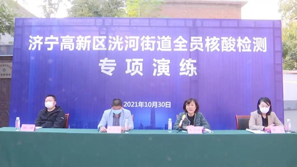10月30日,济宁高新区洸河街道开展2021年全员核酸检测专项演练。