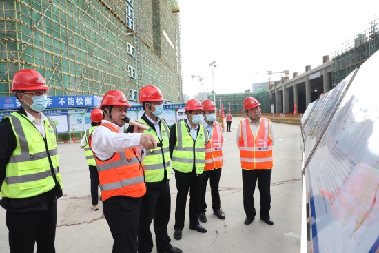王斌一行首先来到深圳地铁12号线机场东车辆段施工现场,听取项目负责人对项目整体推进情况以及安全生产、分包管理等工作的汇报。王斌充分肯定各子企业进入深圳地铁建设领域以来取得的成绩。他指出,要坚持从当下做起、从细节做起,让安全工地、绿色工地成为中国电建的“企业名片”,以安全优质履约获取新的资源,不断巩固和拓展健康可持续发展平台。
