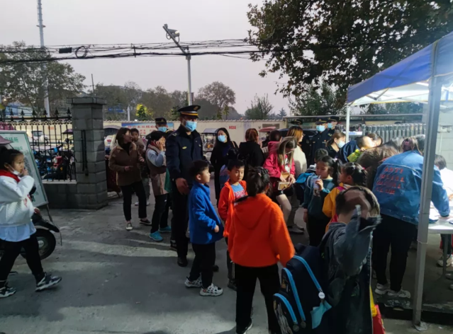 解答接种疑问。接种前,执法队员耐心地为家长们解答接种相关注意事项,主动告知全套接种流程,普及新冠疫苗接种相关常识。