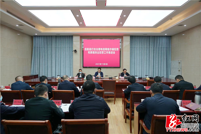 岳阳县融媒体中心11月4日讯(记者 秦淑云 付琴)11月3日,我县在集中收看了全省打击治理电信网络诈骗犯罪和跨境突出犯罪电视电话会议,认真学习了《湖南省打击治理电信网络诈骗犯罪和跨境突出犯罪工作责任制规定》后,立即召开了该项工作推进会,县委书记肖湘晖出席并讲话,县领导姜其胜、陈遇春参加。