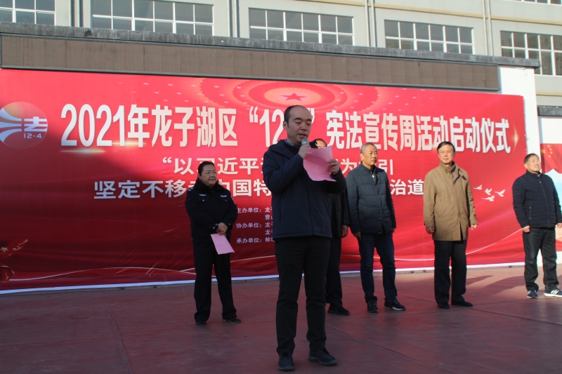 为进一步深化以宪法为核心的中国特色社会主义法律体系法治宣传教育,全面普及法律知识,弘扬宪法精神,12月3日,龙子湖区司法局以“以习近平法治思想为指引 坚定不移走中国特色社会主义法治道路”为主题,开展“1+7+N”宪法宣传系列活动。区人大常委会副主任邹宗南、副区长冯璐、区委政法委副书记郑宝明、区司法局局长周如胜、区人大内司工委主任王保军出席活动。冯璐发表讲话。区司法局副局长郭红主持仪式。