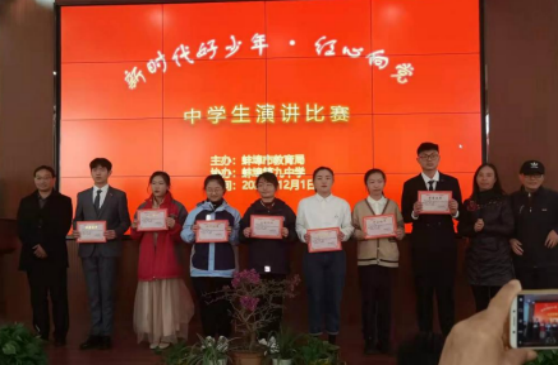 由市教育局和市关工委联合举办的“新时代好少年 .红心向党”中学生演讲比赛于12月1号和12月3号分别在蚌埠九中及龙子湖实验学校举行,来自三县六区和局属学校的20名中学组选手及11名小学组选手参加了决赛。