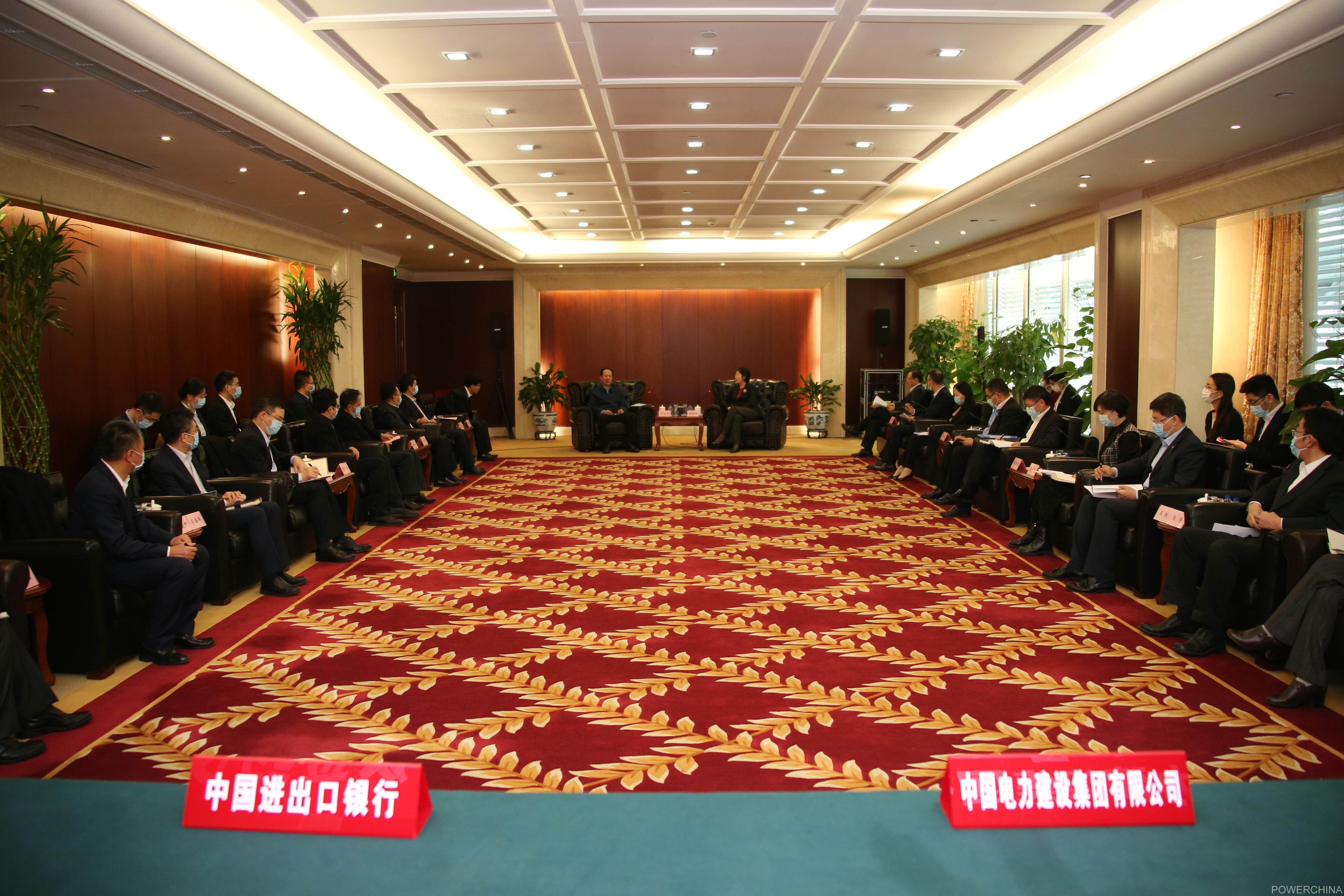 丁焰章对中国进出口银行长期以来给予中国电建的信任和支持表示感谢,并简要介绍公司的整体业务情况和发展规划。他表示,中国电建正深入学习贯彻党的十九届六中全会精神,立足新发展阶段,贯彻新发展理念,服务构建新发展格局,着力拓展“水、能、城”和绿色建材业务,着力提升“投建营”全产业链一体化能力,着力推进国际业务行稳致远。中国电建与进出口银行有着深厚的合作基础,在发展绿色低碳经济成为全球共识的大背景下,双方加强在境内外新能源、水务环保、基础设施建设等领域合作的空间必将十分广阔,希望双方加强沟通对接,优势互补,抱团取暖,合力打造银企高质量发展新篇章。