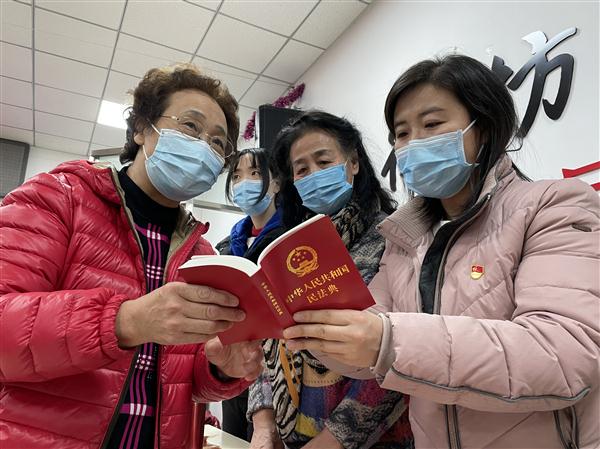 在“线上”,充分发挥新媒体作用,各社区利用微信群、公众号等形式向广大居民推送宪法公益宣传视频、宪法法律常识、宪法法律知识测试试题,以居民喜闻乐见、方便快捷的形式扩大宣传范围,激发广大群众学法的积极性和守法的自觉性。在“线下”,社区工作者向居民发放宪法手册和民法典单行本、摆放民法典知识宣传展板、电子显示屏,增强大家的法律意识,提高依法维权能力。