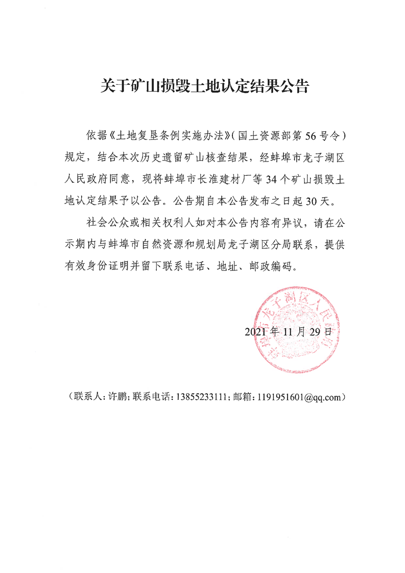 关于矿山损毁土地认定结果公告