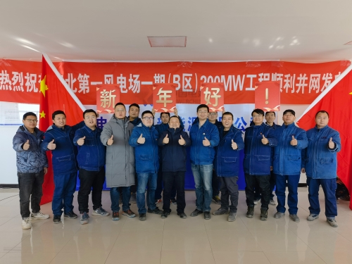 自项目开工以来,新能源集团全面贯彻落实集团(股份)公司党委、集团(股份)公司决策部署,领导干部深入一线指挥,严格落实当地政府疫情防控各项措施,全面协调、精心组织,与各参建方、地方政府及相关部门沟通协调,主动克服了疫情、设备供货和运输、气候等不利因素,严把安全、质量关,加大人力、物力资源投入力度,紧抓机组吊装、调试不放松,开展多个作业面同时推进,并紧盯设备供货和设备运输,确保工程建设井然有序。经过广大干部职工的共同努力,项目于2021年7月30日正式开工建设,2021年8月12日完成了首台机组基础浇筑,2021年10月27日完成了首台机组吊装,2021年12月20日完成了首批(100兆瓦)机组吊装,2022年1月1日实现了330千瓦升压站受电成功,2022年1月3日实现了首批机组并网发电。