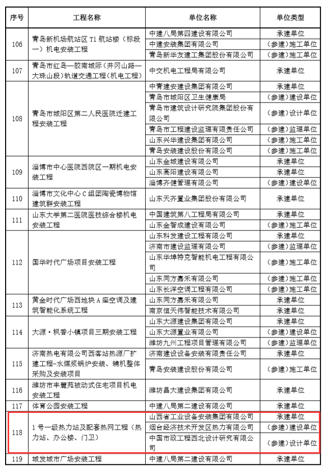 第二工程公司烟台1号一级热力站及配套热网工程喜获“安装之星”荣誉
