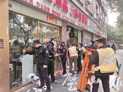 整治过程中,执法人员还督促沿街商铺落实“门前三包”责任制,做好门前卫生清理,保持整洁有序的门面经营环境,自觉遵守城市管理规定,营造良好的城市环境。