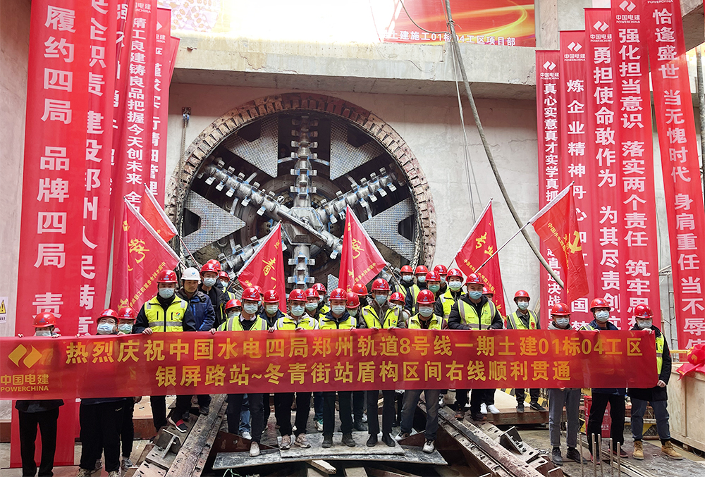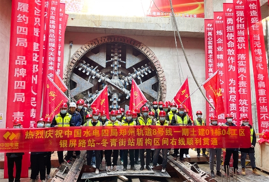 1月3日,随着“818号”盾构机刀盘破土而出,郑州地铁8号线银屏路站~冬青街站盾构区间右线顺利贯通,至此,水电四局承建的两个盾构区间4条盾构隧道全部实现贯通。