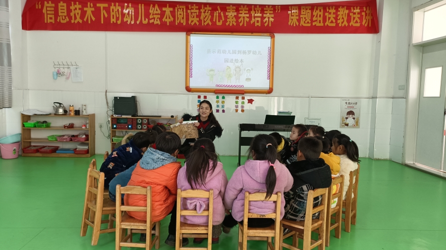 为了更好的落实《固镇县中小学(幼儿园)“大阅读工程”实施方案》,固镇县示范幼儿园教育集团结合帮扶计划,于1月6日来到任桥杨罗幼儿园开展送书送阅读活动。示幼集团北城园执行园长宋晓平和集团省级课题“信息技术下的幼儿绘本阅读核心素养培养”小组成员高琦、邱晓娟、苏文,组成帮扶小组负责本次送阅读活动。 课题组为杨罗幼儿园的孩子们精心挑选了的绘本书籍。高琦老师示范了教师如何引导幼儿进行阅读活动,介绍了引导幼儿走进绘本、爱上阅读的教育策略。支教教师苏文给老师们带来了一节幼儿创编绘本活动,引导幼儿在绘本阅读的基础上,大胆表达自我,发展幼儿的表达与评判能力。 本次帮扶活动不仅为农村孩子们带来了书籍,还更新了农村教师们的阅读理念和阅读指导策略,启发了杨罗幼儿园教师们思考如何根据实际情况开展幼儿阅读活动,对杨罗幼儿园“大阅读”活动的开展起到了积极引导作用。
