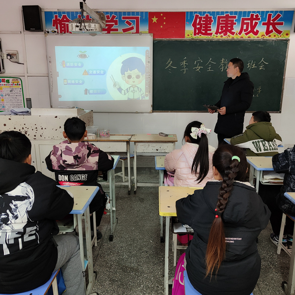 崔海密校长强调,冬季雨雪天气增多,道路湿滑,路面易结冰,也是交通事故高发期,各班要切实做好学生冬季安全教育宣传活动。活动积极开展,各班利用班会开展冬季安全教育主题班会,播放交通安全宣传教育视频,并要求学生在上学和放学时,要特别注意,多留意车况、路况,主动避让机动车辆。遇到雨雪天气要谨慎慢行,按时回家,确保安全。同时各班出一期“安全伴我行”的黑板报,增强学生安全意识。