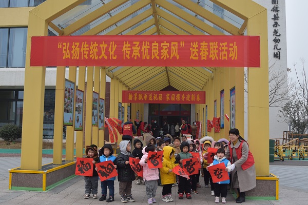 “翰墨飘香送祝福,家园携手迎新春”——固镇县示范幼儿园送春联活动