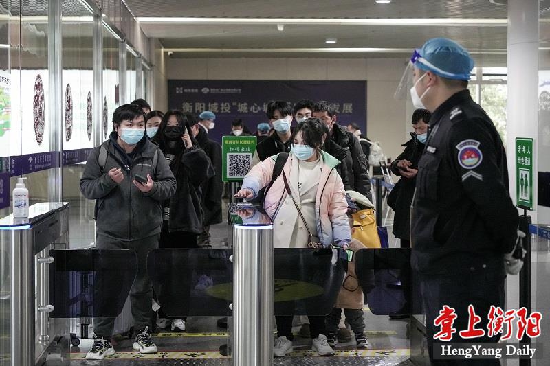▲1月11日,衡阳南岳机场,返衡旅客陆续扫码出站