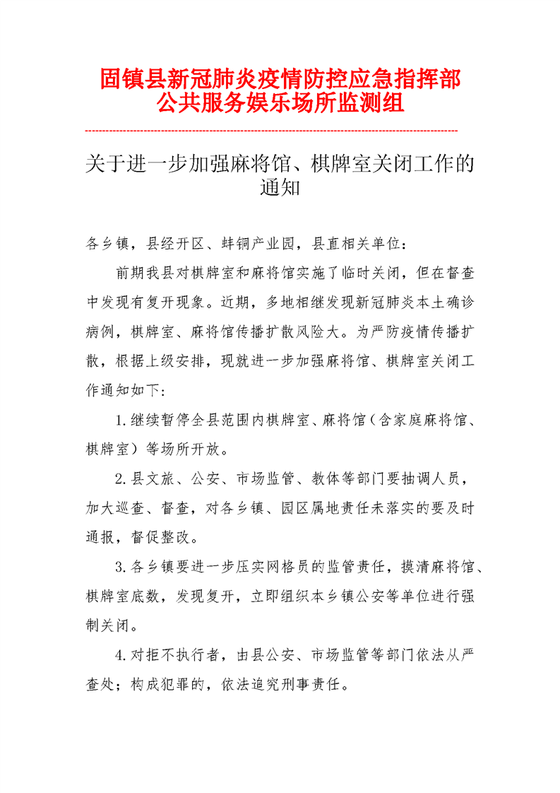 关于进一步加强麻将馆、棋牌室关闭工作的通知