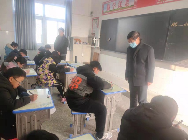 局领导首先听取了期末考试工作的开展情况,随即深入考场巡视检查考试安排、考试秩序以及学生答题等情况,每到一个考场,学生们均在认真思考,细心作答,监考老师尽职尽责,考场纪律、卫生状况良好。
