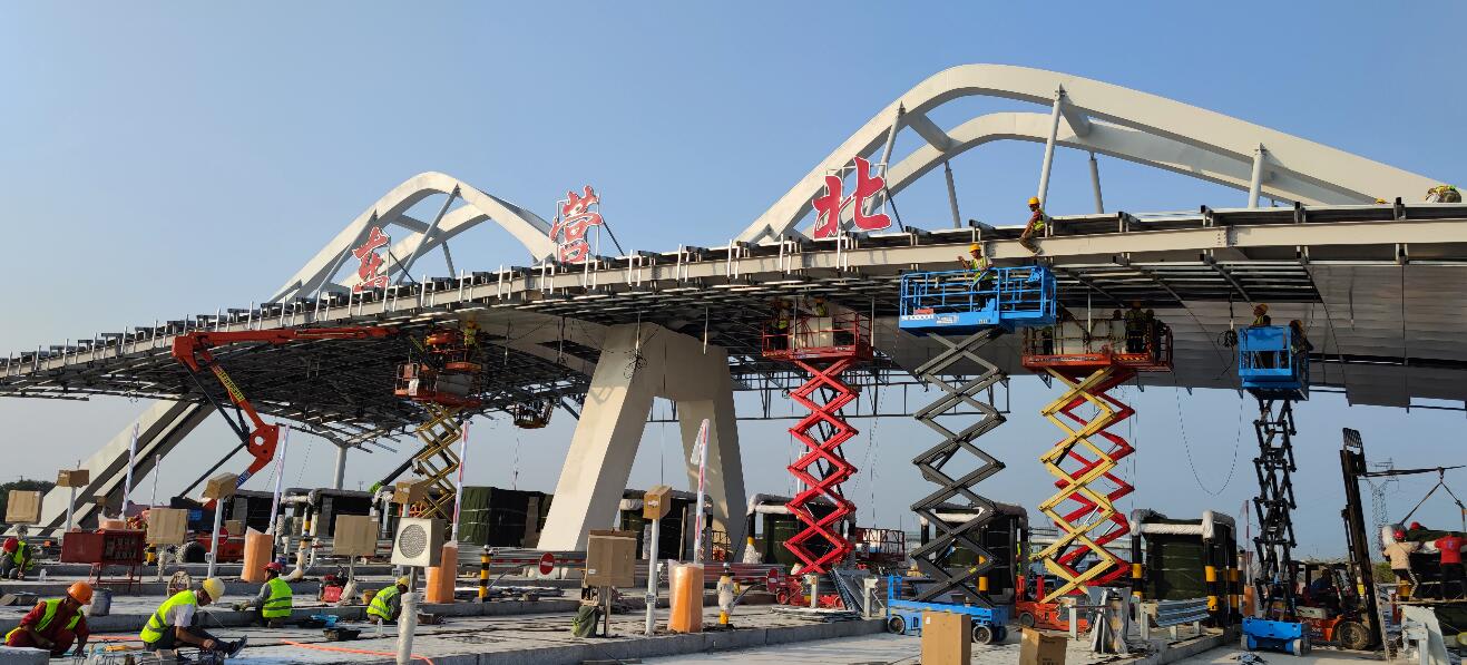 面对时间紧任务重、设计变更频繁、质量要求高、社会环境复杂、多单位、多工种交叉作业等等不利因素和困难,项目领导班子发挥模范先锋作用,带领项目部职工一边顶着新冠疫情压力,落实做好疫情防控;一边通过精心组织,细化施工,在确保工程进度的同时,保质保量按期完成了工程进度。2021年2月6日北二路主路通车,4月30日北二路全面通车,9月19日提前11天完成东营北立交及收费站工程,10月15日北二路绿化初验,12月31日北二路路段通过联合验收。