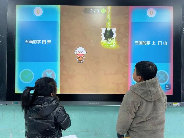 “时光流转”、“星球对对碰”、“寻找银河碎片”等多个游戏关卡将学科知识与生活常识有机整合,学生运用积累的知识解锁通关,整个过程中,既有个人闯关、双人PK,还有小组比拼。通过模拟太空情境,充分调动学生的学习兴趣,在“玩”中检测同学们的综合素养能力。