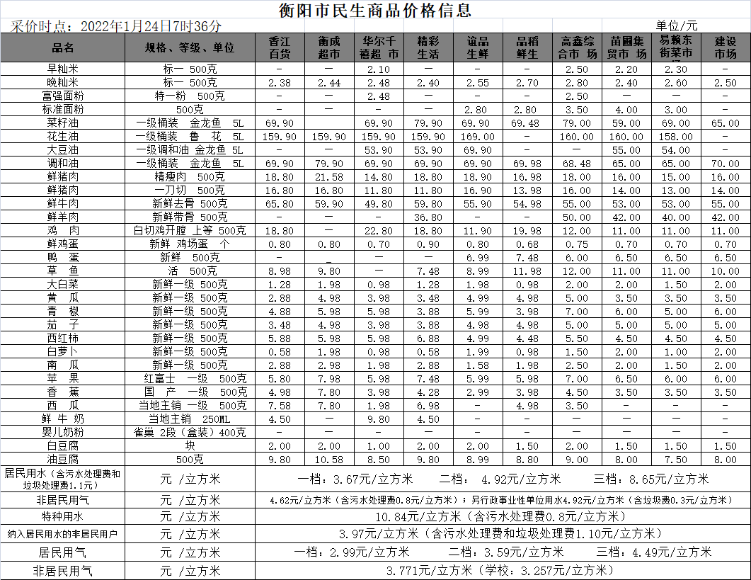 【物价】 2022-1-24衡阳市民生价格信息