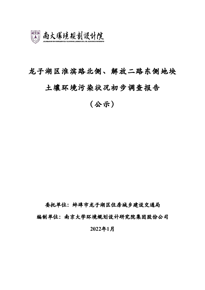 龙子湖区淮滨路北侧、解放二路东侧地块土壤环境污染状况初步调查报告网上公示