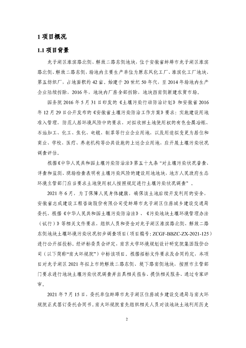 1、项目名称:龙子湖区淮滨路北侧、解放二路东侧地块土壤环境污染状况初步调查项目