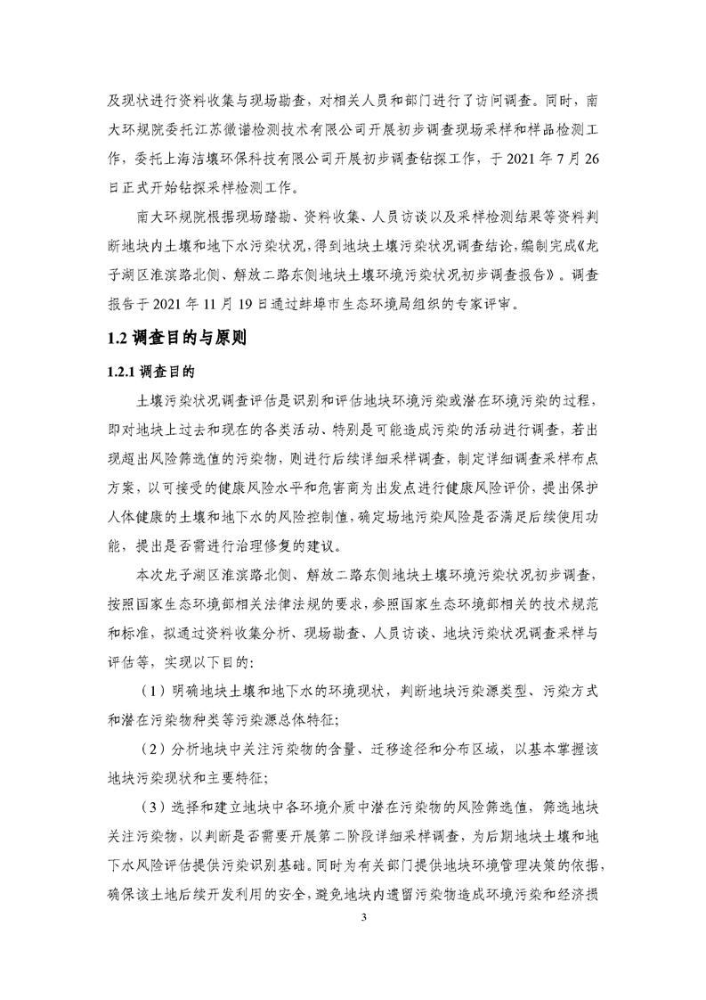 2021年11月19日,调查报告顺利通过由蚌埠市生态环境局在蚌埠市组织召开的技术评审会。地块调查主要结论如下: