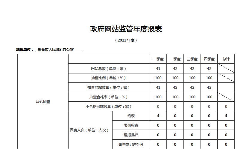 东莞市2021年政府网站监管年度报表