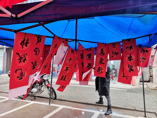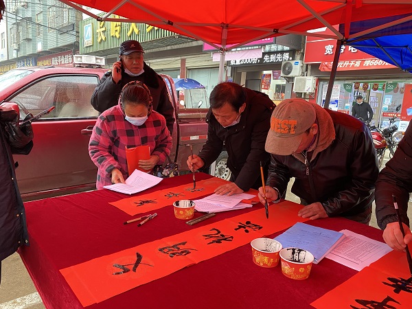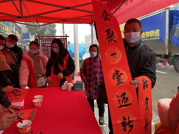 寒风将人们用热情书写在红纸上的墨滴吹出浓浓的年味儿,群众纷纷把这次活动写下的美好祝愿带回了家。(梁子镇 刘芬)