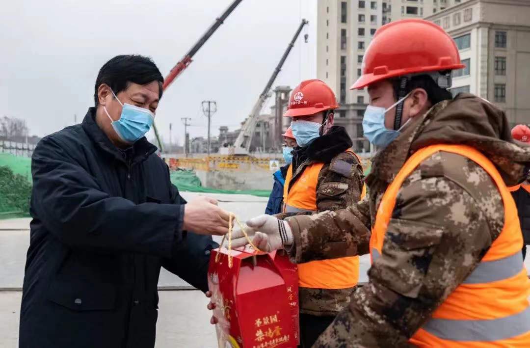 ? 张兴彦检查了龙涵道站疫情防控与施工生产工作,询问了地铁10号线节日期间施工保障方案与人员返岗计划,对参建人员致以节日的问候和新春的祝福,向他们顾全大局、负重前行、迎难而上的精神表示肯定与赞赏,并亲自发放了鸡蛋、大米、食用油等慰问品。