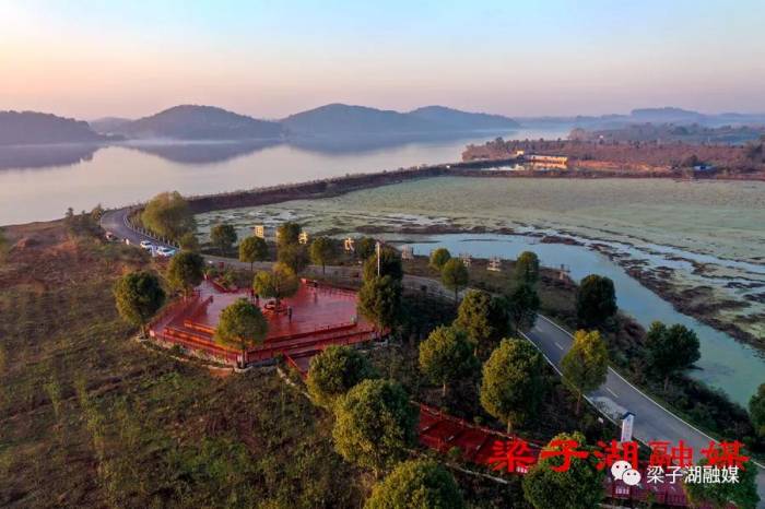 每逢旅游旺季,很多到梁子湖的游客都要在这里驻足,欣赏山水相依、花海起伏的美景。