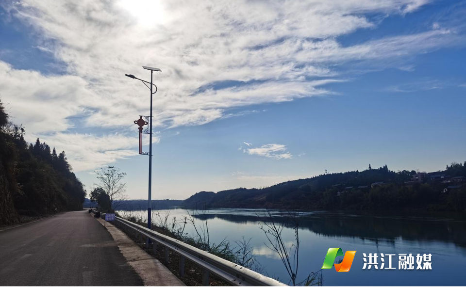 1月22日傍晚,笔者漫步在茅渡乡S249沿河路上,微风轻柔拂过脸庞,一排崭新的太阳能路灯挂着红色的中国结充满了节日的喜庆氛围,仔细一看,路灯下还新栽种了许多樱花树苗,来年春天,这里将有望形成一条繁花锦簇的浪漫樱花沿河风光带,让人无限遐想。