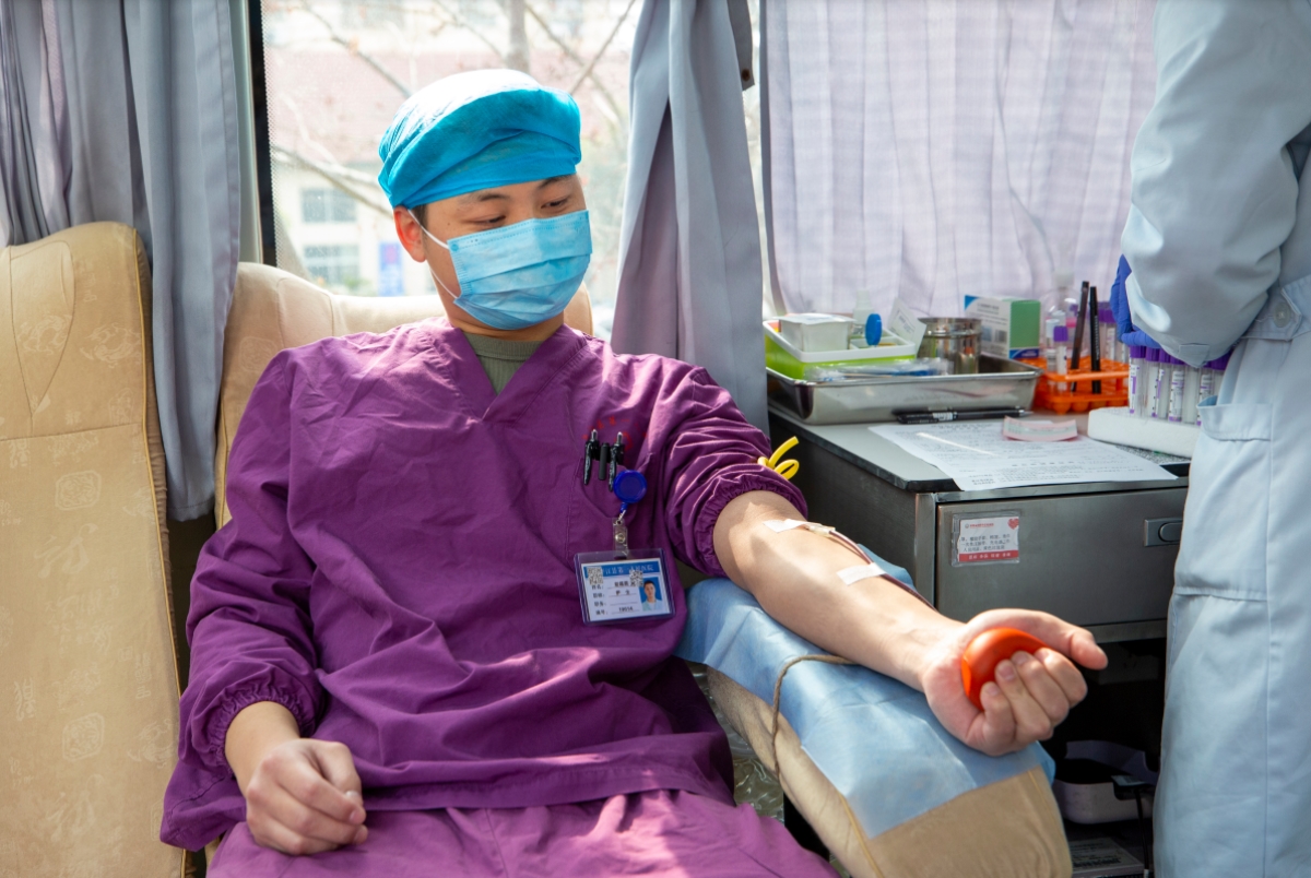 献血现场,参加献血的人员陆续登上献血车,填表、体检、初筛、采血,满含奉献与爱心的血液从平一医人的手臂缓缓流向采血袋。在献血队伍中,既有来自临床一线辛勤工作的医生护士,有默默无闻的后勤保障员工,有连续献血多年的“献血达人”,也有首次献血的“献血新星”。