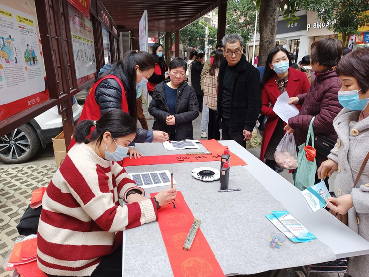 伏案挥毫墨迎春:春联作为楹联的一种,是中国特有的文学形式,用以抒发美好愿望,新春将至,华达花园小区党支部书法爱好者为居民挥毫泼墨写春联,并赠予过往居民;洋锦社区联合福州市长乐区书法家协会、长乐区医院开展“翰墨飘香贺新春,爱心义诊送健康”写春联送祝福活动,把新春的祝福送入百姓家。吉祥好运剪出来:年货,是春节的重要符号,烘托了新年的喜乐氛围。航兴社区同宏利幼儿园志愿者带领居民孩子DIY“鞭炮响响福气到”“螃蟹红红好运来”主题年货,在与园区小朋友的互动交流间,给新年添上红火;跳蚤市场便民生:跳蚤市场作为每月爱邻日的最热闹环节,西关社区特别推出“新春版”跳蚤市场,把居民的剪纸、红灯笼等年货以物易物、低价出售,给新春增添了浓浓的年味儿。