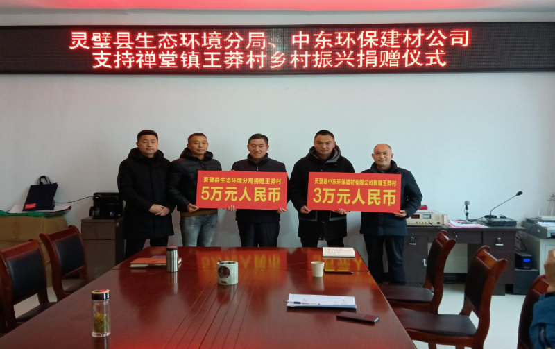 为拓展脱贫攻坚成果同乡村振兴有效衔接,践行“我为群众办实事”实践活动,1月25日下午,灵璧县生态环境分局、灵璧中东环保建材有限公司,到禅堂镇王莽村走访慰问驻村工作队,并分别向王莽村捐赠了乡村振兴帮扶资金。