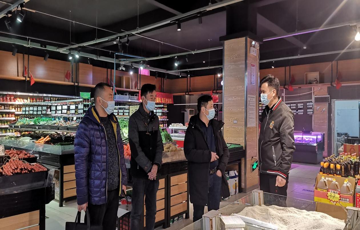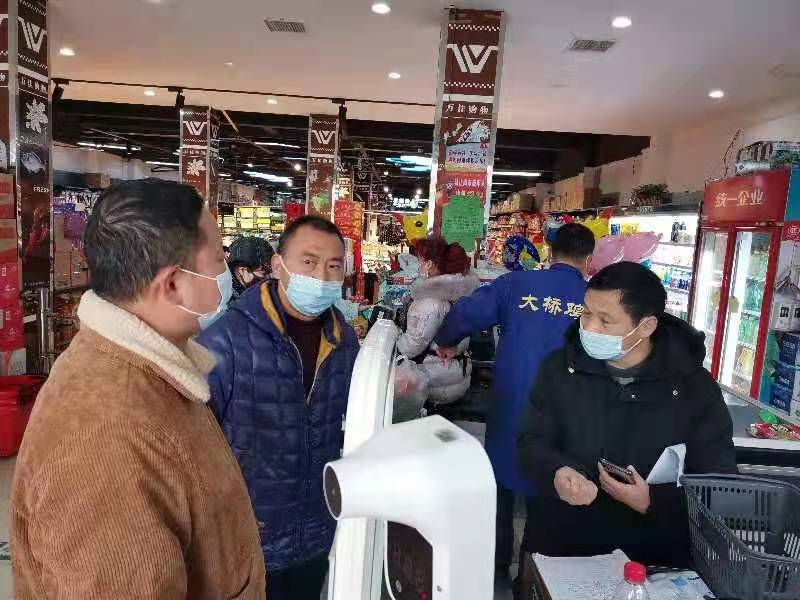 在万佳超市,对负责人刘文学了解重要民生商品的市场投放和周转库存,提示商家们不要售卖假冒伪劣商品、严禁商品囤积居奇、哄抬物价等违法违规行为。