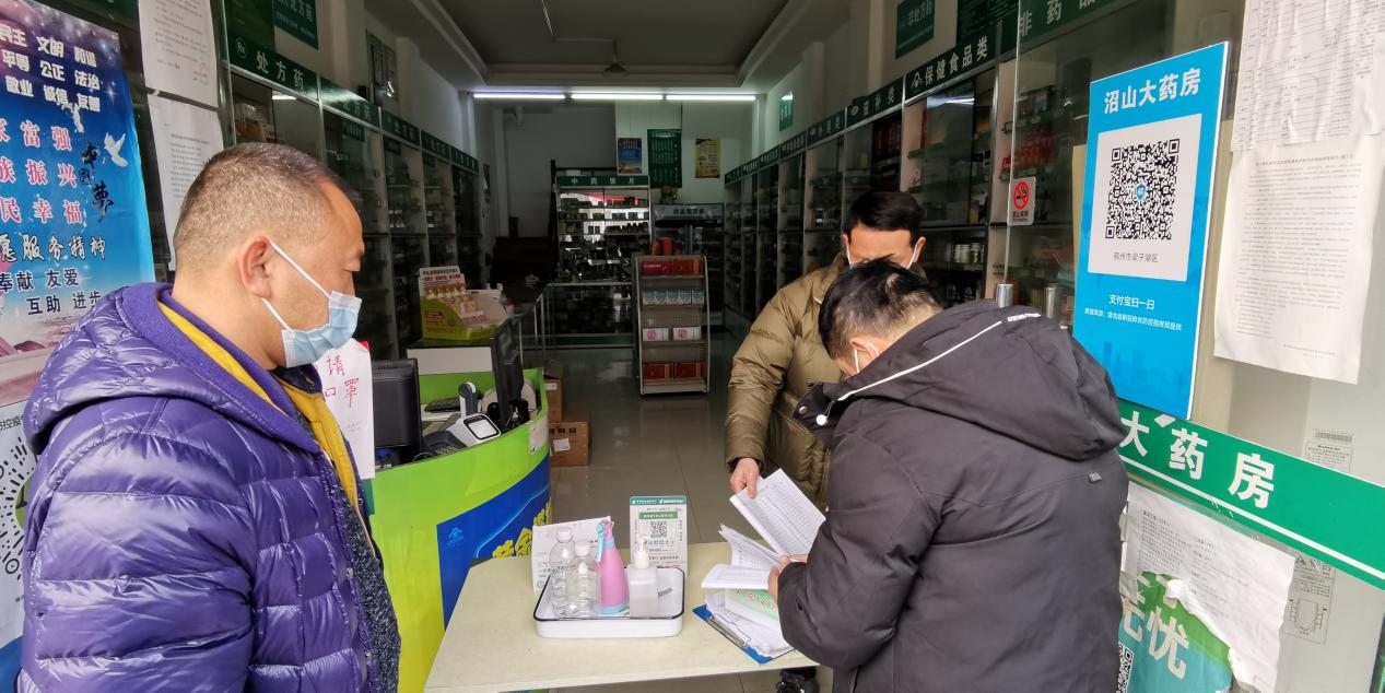 专项整治行动中,陈建双、余平华、明海圣、查萍、张梦云等工作人员认真对集镇辖区内超市、农贸市场、药店等商家逐一进行检查督查。
