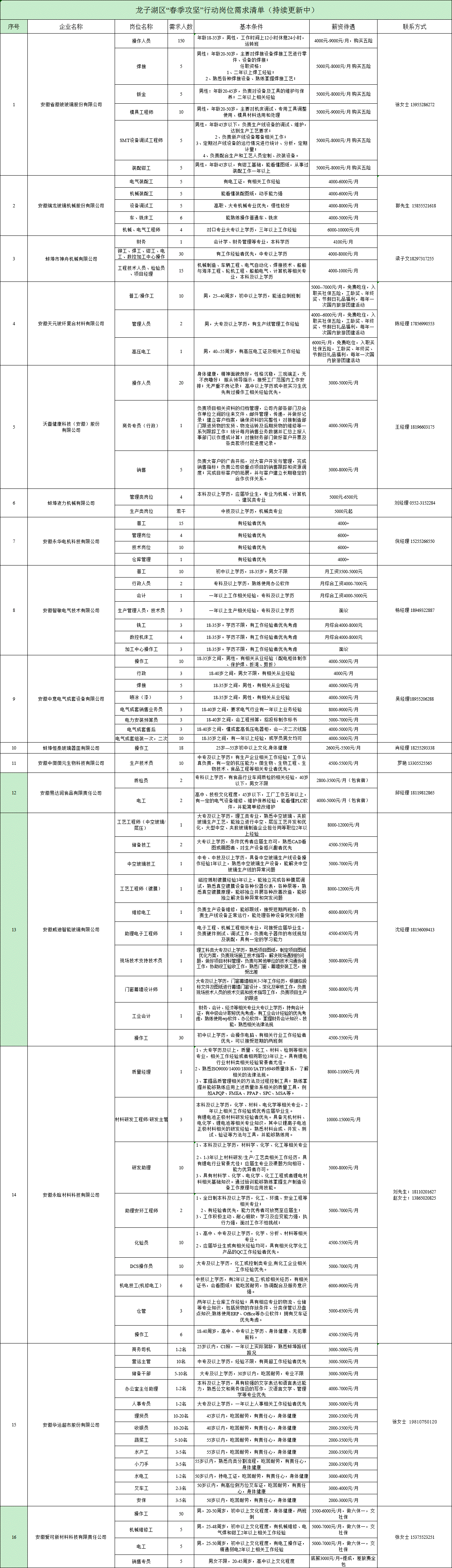 龙子湖区“春季攻坚”行动岗位需求清单(持续更新中)