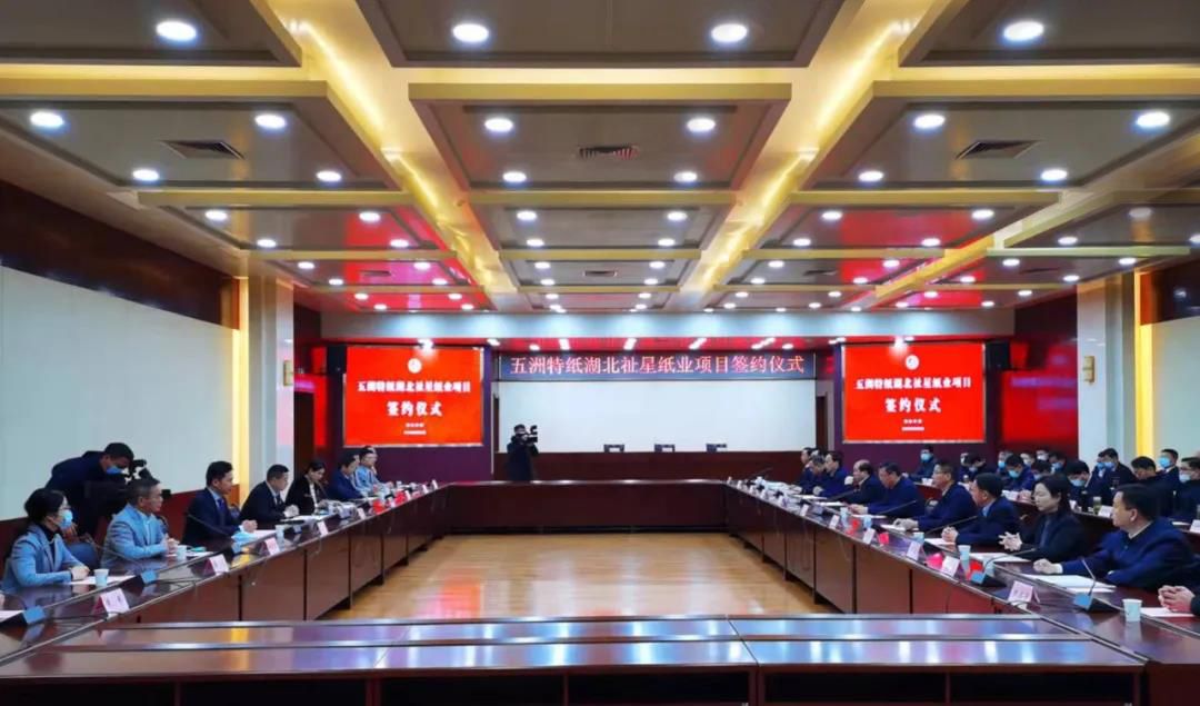 孝感市委书记吴海涛,五洲特纸股份有限公司董事长、总经理赵磊出席仪式并讲话,孝感市委副书记、市长熊征宇主持签约。会上,赵磊与孝感市委常委、常务副市长刘敏,汉川市委副书记、市长戴少平签订《五洲特纸浆纸一体化项目投资合同书》。