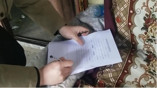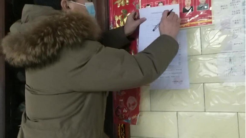 金家沟村返乡人员签收隔离通知书、粘贴隔离告知书