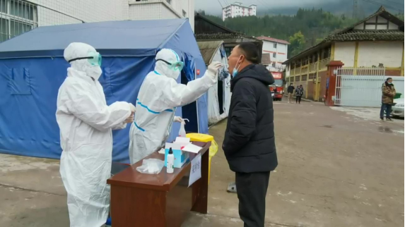 在全员核酸采样演练现场。村支部书记负责组织本村130余村民间隔1米、佩戴口罩列队站在村委会院坝等待核酸采样,镇卫生院组织2个采样台进行采样,专人负责登记相关信息,村支部书记提供准确村民信息,完成采样村民有序返家。完成采样后,镇卫生院收集样本,认真核对采集管,登记数目并放入透明塑料密封袋中,封严袋口放入密封容器内,专人运送到检测机构。最后,将医疗废物全部放入专用的医疗废物垃圾袋打包封口,并对垃圾袋消毒。