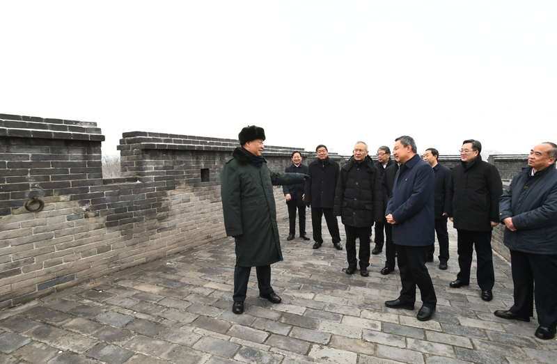 1月26日至27日,中共中央总书记、国家主席、中央军委主席习近平来到山西,看望慰问基层干部群众。这是27日上午,习近平来到平遥古城,登上城墙考察。新华社记者 谢环驰 摄