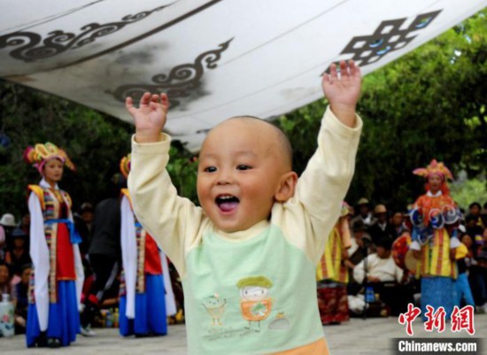 图为在拉萨罗布林卡观看藏戏表演的小朋友。(资料图) 林思媛 摄