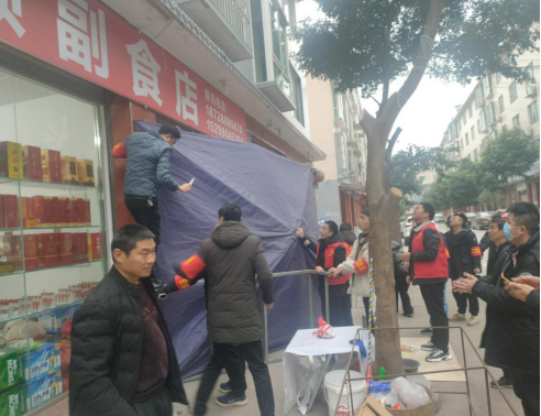 我镇“荣魂”实行坐商归店、行商归市等分组志愿服务队与县执法人员对流动商贩违规占道、坐商未归店、店招雨棚乱放乱搭等违规占道经营现象进行耐心劝导,目前累计整治摊位25个,引导流动商贩20个,有效的规范了市场秩序,周边居民为此纷纷点赞。