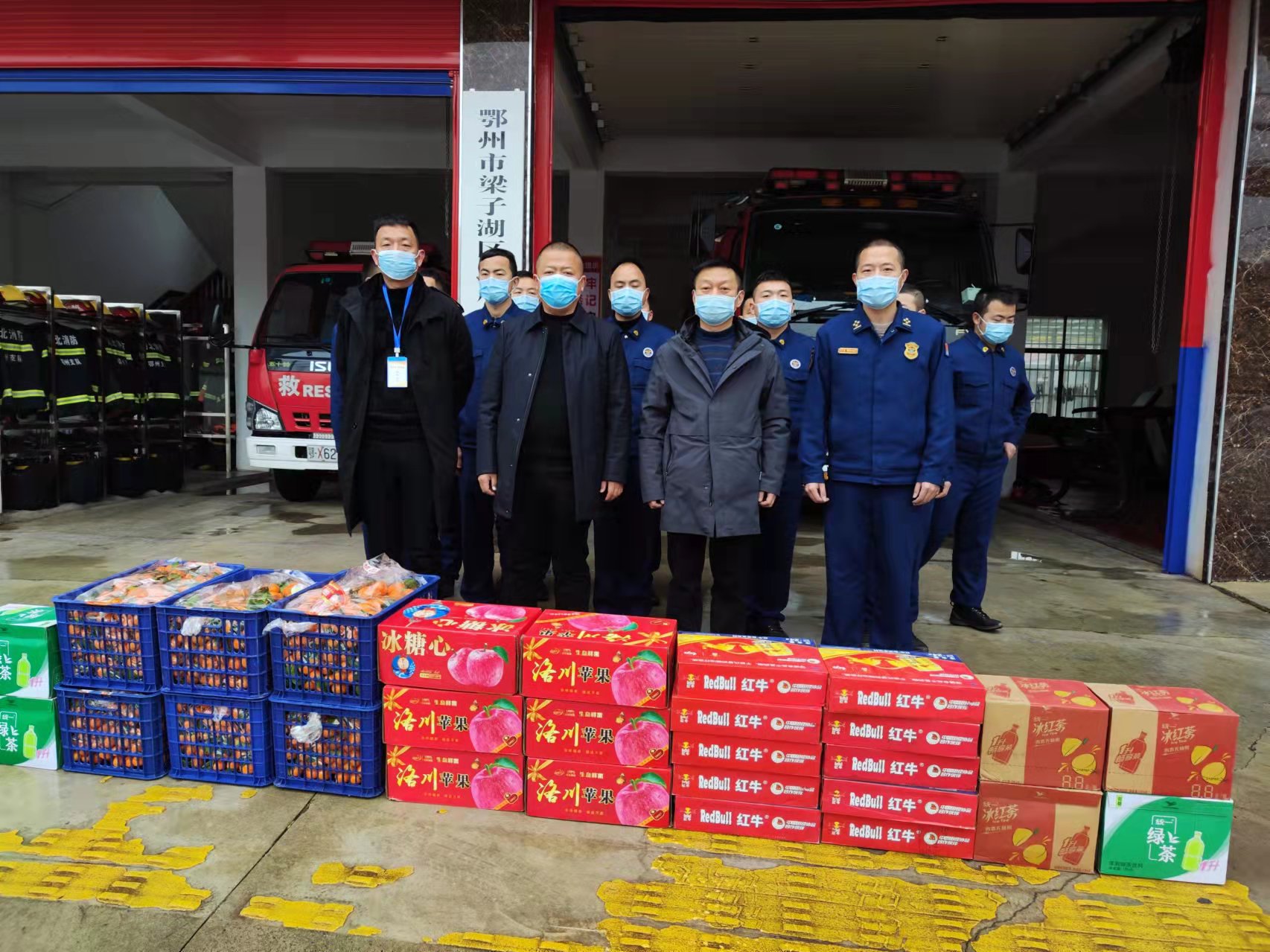 在消防大队,张学龙送上慰问品感谢区消防大队2021年在经济发展和群众安居乐业方面所作的贡献,并代表太和镇党委政府向全体消防官兵表示衷心的感谢,为他们送上新春的祝福。